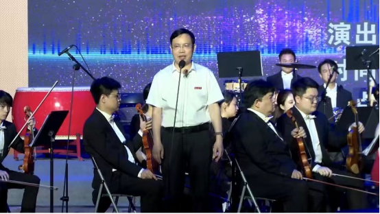 黄昕为音乐会致辞。他表示,作为一所工科类院校,我们应该让艺术为科技赋能,让科技为校园增色,让艺术点亮未来,让音乐照亮未来。他希望,广大学子要认真感受音乐的魅力,在音乐旋律的鼓舞下进一步努力学习,将弦乐器的真理运用到科技之中,用心聆听交响乐磅礴的力量。