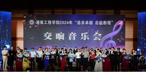 4月28日晚,我校在体育馆举行2024年“追求卓越 启航新程”交响音乐会,邀请湘江交响乐团现场演奏,国家一级指挥、湖南工商大学音乐学院院长肖鸣教授担任指挥。校党委书记黄昕,党委副书记、校长易兵,在校校领导、中层干部、特邀嘉宾、师生代表现场观看。本次音乐会采取线上、线下同步直播方式进行,为广大观众带来了一场赏心悦目的视听盛宴。