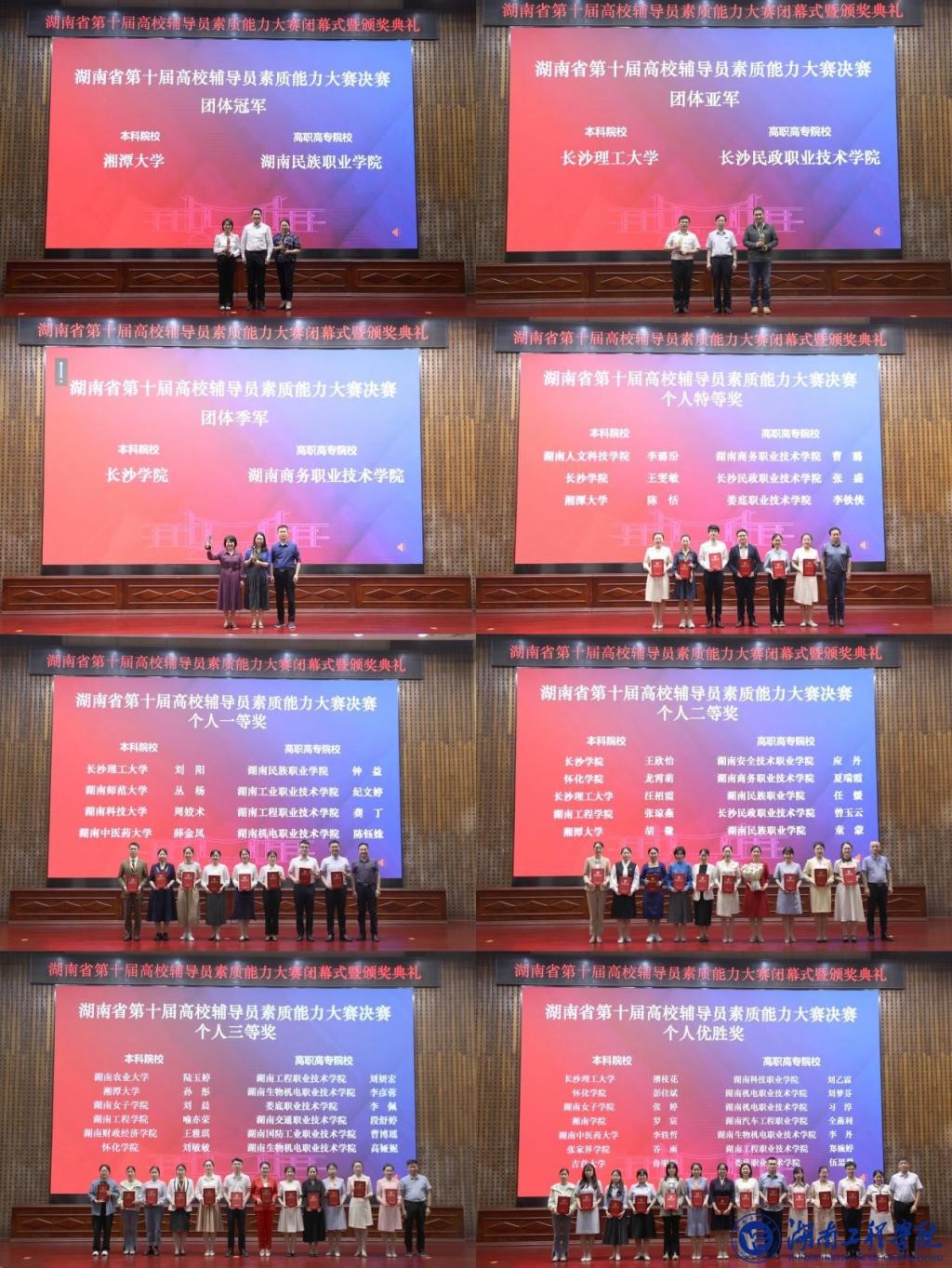 在本次大赛中,我校辅导员张琼燕获个人湖南省辅导员素质能力大赛二等奖,喻亦荣获个人三等奖。