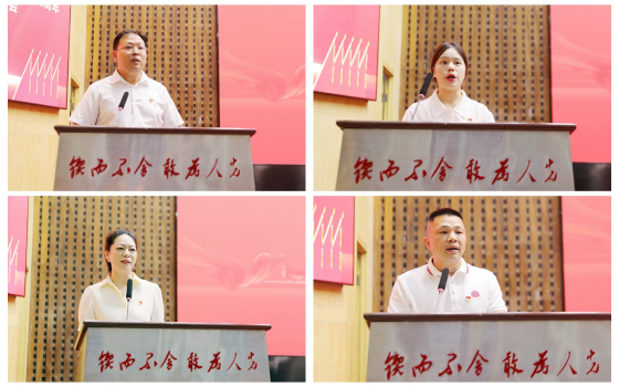 “我将严格要求自己,更好发挥党员的先锋模范作用,带领团队积极主动对接湖南省现代化产业体系的重大需求,更好服务‘三高四新’美好蓝图。”“我将带着母校的谆谆教诲,铭记锲而不舍、敢为人先校训精神,努力创造无愧于党、无愧于人民、无愧于时代的成绩。”“作为党务干部,16年来,我的岗位虽变,但初心不改,唯有坚定信念跟党走,才能把好‘忠诚’这个方向盘。”“我们始终牢牢把握马克思主义理论学科建设和思想政治理论课改革创新两个着力点,培养让党放心、爱国奉献、担当民族复兴大任的时代新人。”……优秀共产党员教师代表纺织服装学院程浩南、优秀共产党员学生代表机械工程学院王盼、优秀党务工作者代表外国语学院党委书记陈亚琼、先进基层党组织代表马克思主义学院党总支部书记邓学源先后作大会交流发言。