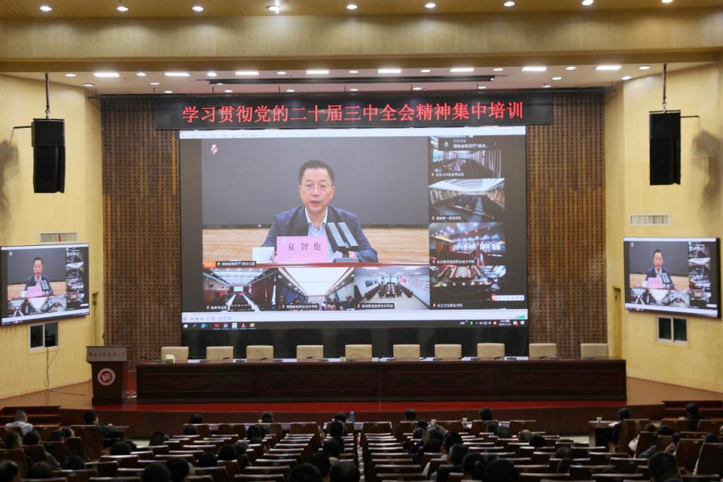 11月14日-15日,省委教育工委、省教育厅举办学习贯彻党的二十届三中全会精神集中培训班。我校组织参加视频会议培训,校党委副书记向前主持学习会。