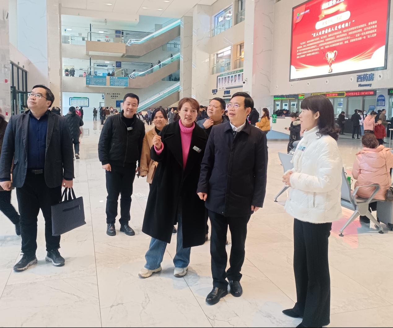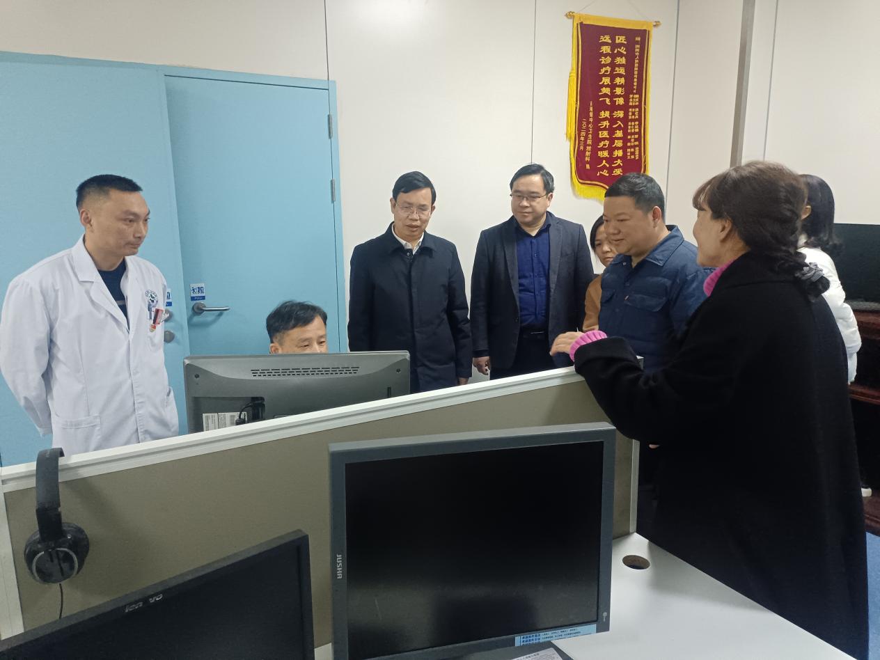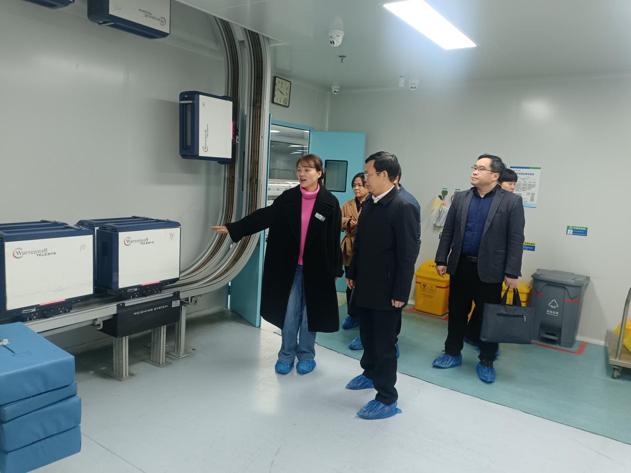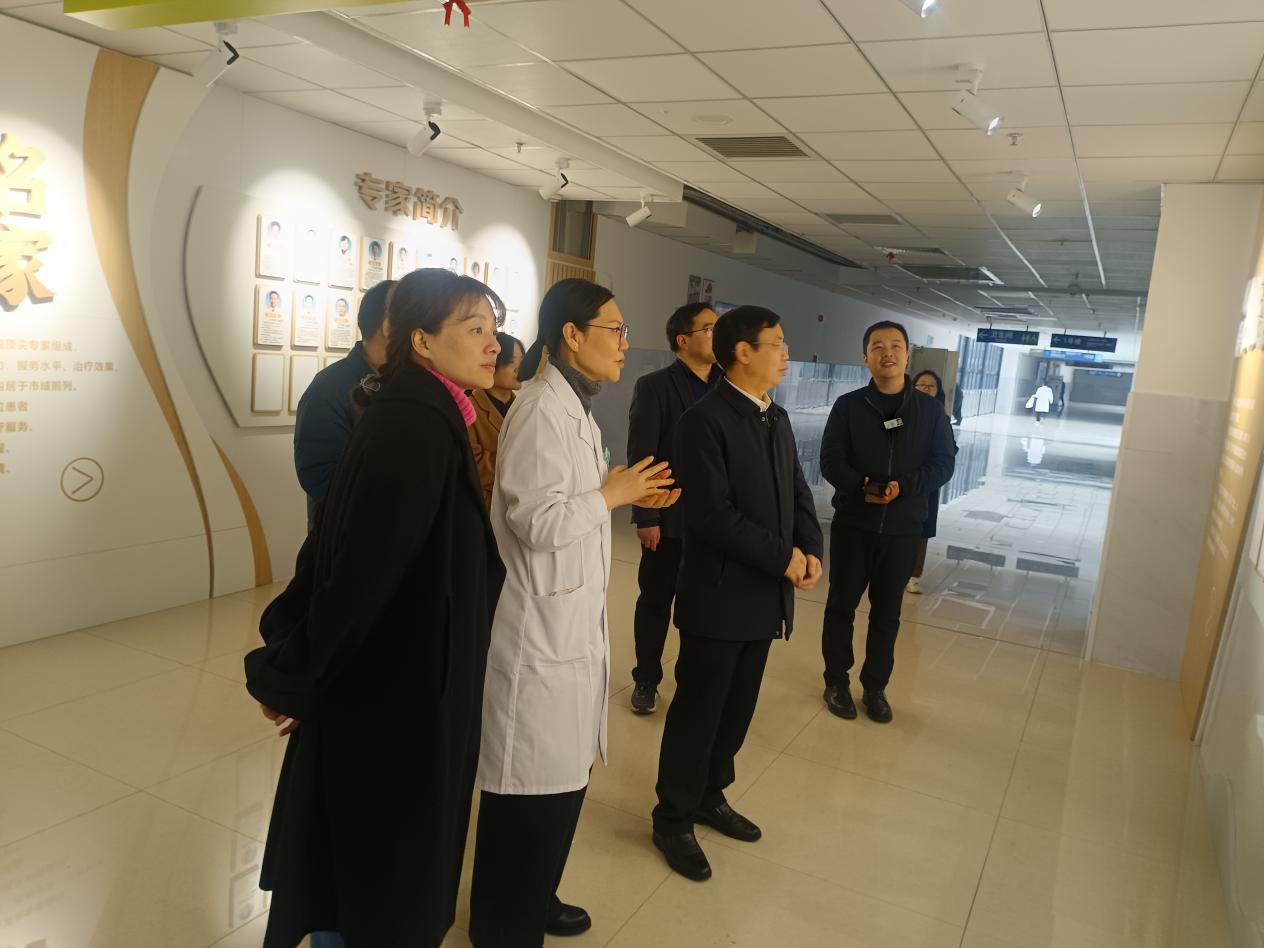 黄昕一行先后参观了医学影像中心、浏阳市肿瘤医院、健康管理中心、消毒供应中心等重点科室,详细了解了医院的发展历程、智慧医疗建设等情况。