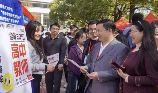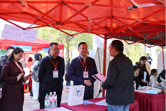 招聘会期间,黄昕与企业代表亲切交流,了解招聘需求及市场趋势,还与毕业生深入交谈,鼓励他们把握机遇,投身国家战略性新兴产业和区域经济发展。他指出,学校立足区域产业需求,通过常态化走访企业、深度对接产业链人才需求等举措,助力毕业生高质量充分就业。同时强调,要以招聘会为契机,推动教学单位与企业深度对接,打造产教融合型岗位蓄水池;以访企拓岗为纽带,建立校企协同育人中心,搭建“量质并重”的就业生态圈;以分类职业规划指导为抓手,将职前教育嵌入专业课程体系,提升人才培养质量。