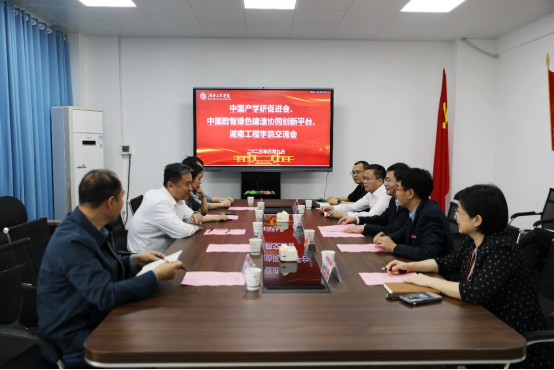 4月9日下午,我校在智慧建造与能源工程学院318会议室举办中国数智绿色建造协同创新平台建设交流会。北京阿科普机电工程有限公司董事长、中国数智绿色建造协同创新平台秘书长、北京湘潭企业商会会长黄智勇一行,湖南科技大学相关负责人燕飞,我校党委副书记、校长易兵,党委委员、副校长吴志军,以及科研管理处、信息科学与工程学院、智慧建造与能源工程学院负责人和教师代表参加会议,会议由吴志军主持。