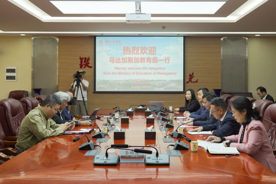 4月13日,马达加斯加教育部与我校战略合作框架协议签约仪式在我校举行。马达加斯加教育部办公厅主任CHAN KI KIONG Alain率代表团到访,与我校党委副书记、校长易兵,党委委员、副校长罗毅平、张小刚等校领导及相关部门负责人共聚一堂,见证这一深化国际合作的重要时刻。签约仪式由罗毅平主持。