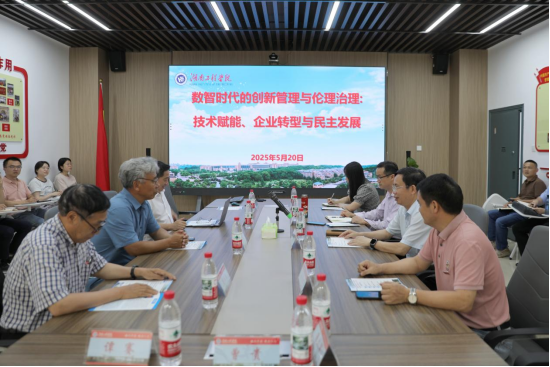 5月20日,由我校商学院主办的“数智时代的创新管理与伦理治理:技术赋能、企业转型与民主发展”学术会议在教学楼F103举行。会议邀请中国企业管理研究会副会长黄鲁成、中国社会科学院教授黄速建、北京师范大学教授唐任伍三位知名学者作专题报告。我校党委书记黄昕,商学院负责人及师生代表参加会议。