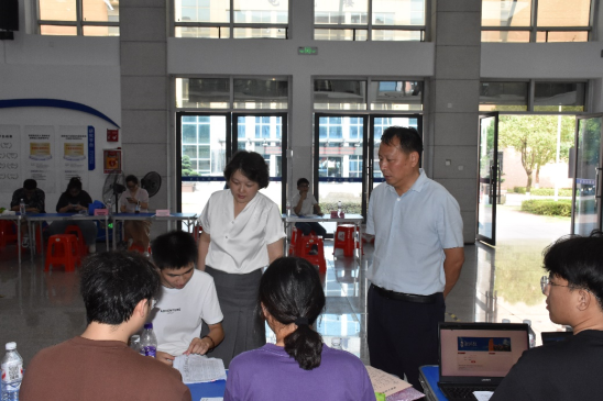 报到期间,学校及学院领导老师高度关注研究生迎新工作。党委委员、副校长魏克湘一行前往迎新现场,问候坚守现场的工作人员和学生志愿者,实地检查各项工作落实情况,细致察看报到流程,详细了解新生报到进展,并对迎新工作人员和志愿者的周到服务给予充分肯定。