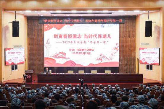 9月26日上午,党委书记黄昕以《燃青春报国志当时代弄潮儿》为题,在一报告厅为2025级新生讲授一堂生动而深刻的开学第一课。全体新生通过现场和网络同步直播的方式参加学习。