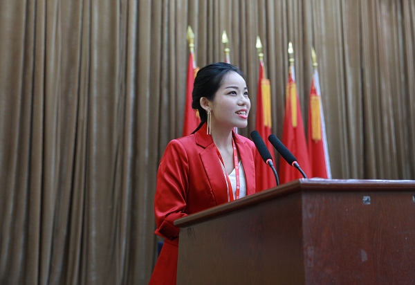 经贸英语0312班校友杨杰作为会员代表发言