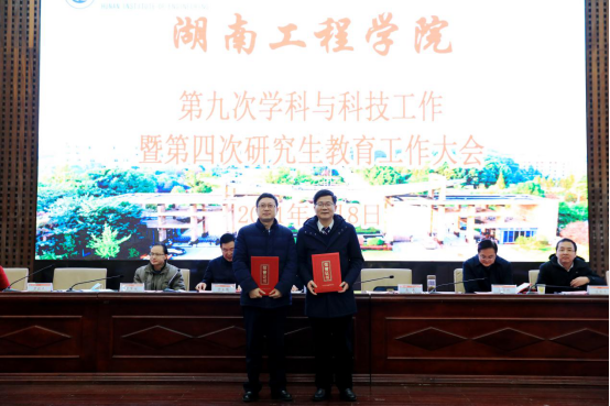 校长易兵作大会报告,党委书记陈岳堂作总结讲话,党委副书记宁立伟宣读“从教三十年”奉献奖文件,纪委书记俞贵邦宣读2019-2020年度科技工作先进集体与先进个人表彰文件,副校长李军林宣读2020年湖南省优秀硕士学位论文、校级优秀硕士学位论文指导教师表彰文件,副校长罗毅平主持大会。全体校领导,党委委员,中层干部正职,省、校级学科带头人,研究生导师,研究生任课教师,博士,教授,学位点秘书,研究生代表,获奖人员参加会议。