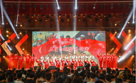 “携青春向你走来,跨越星辰大海”“强国一代有我在,这种精神有未来”“我爱你中国,亲爱的母亲”……6月22日下午,澎湃激昂的歌声回荡在我校体育馆上空。