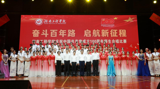 “从小爷爷对我说,吃水不忘挖井人……”“钟山风雨起苍黄,百万雄师过大江,虎踞龙盘今胜昔,天翻地覆慨而慷……”6月23日晚,我校在体育馆举行“奋斗百年路启航新征程”庆祝中国共产党成立100周年师生合唱比赛,校领导陈岳堂、彭立威、罗毅平、齐路良、张小刚、向前,党委委员张华玲出席活动,全校各分工会、直属工会小组的师生用嘹亮的歌声表达对祖国的热爱,对党的忠诚。