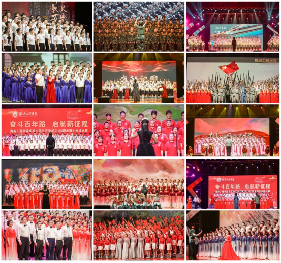 传承先烈精神,凝聚奋进力量。材料与化工学院师生一首《前进吧,中国共产党》唱出共产党员不怕牺牲勇于奋斗的精神,激发了党员的斗志;设计艺术学院师生带来的《咱当兵的人》,将军人无私奉献的形象呈现在观众眼前;建筑工程学院师生带来的《光荣与梦想》、应用技术学院和工程训练中心师生带来的《在灿烂的阳光下》表达全国各族人民在党的带领下向着中华民族伟大复兴前行。外国语学院师生带来合唱《我的祖国》唱出了对祖国、对家乡无限热爱之情;机械工程学院师生带来的合唱《七律·人民解放军占领南京》重温中国人民解放军渡江解放南京的雄伟场景。计算机与通信学院的《歌唱祖国》表达了师生对祖国的美好未来的祝愿。