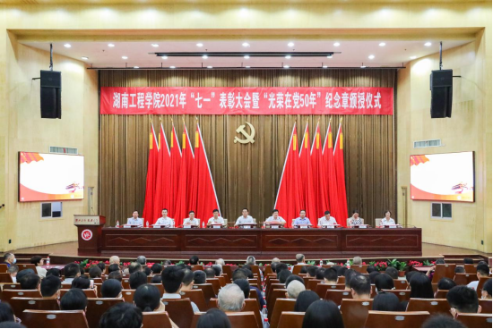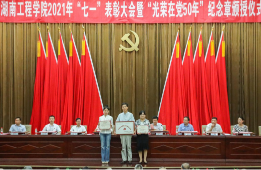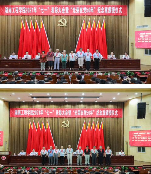 党委副书记彭立威宣读“光荣在党50年”人员名单和《中共湖南省委组织部关于通报表扬担当作为优秀干部的决定》;党委委员、副校长罗毅平宣读《中共湖南省离退休干部工作委员会关于对第五批全省示范离退休干部党支部(总支)予以授牌的通报》;党委委员、纪委书记齐路良宣读《全省高校党组织“对标争先”建设计划第二批项目评选结果的通知》;党委委员、副校长张小刚宣读《2020年湖南省普通高校百名优秀大学生党员通报》。与会领导为“光荣在党50年”老党员颁授纪念章、为荣获各级党组织荣誉的先进集体和优秀个人颁奖。