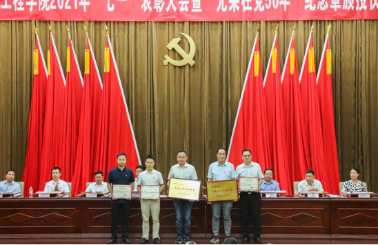 70载弦歌不辍,70载桃李天下。陈岳堂代表学校党委,向为学校建设发展作出贡献的党组织和共产党员表示诚挚的感谢。他指出,今年学校迎来办学70周年,回望过往的奋斗路,眺望前方的奋进路,我们要铭记奋斗历程,担当历史使命,从百年党史中汲取前进力量,办好人民满意的教育,办好中国特色社会主义大学。