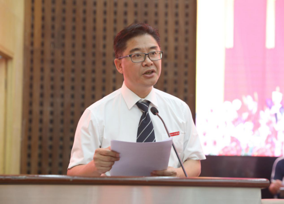 使命光荣,不忘育人初心;重任在肩,更须砥砺奋进。7月23日上午8时10分,我校第四届教职工暨工会会员代表大会第二次会议在一报告厅隆重举行,校长易兵作学校工作报告,党委副书记、工会主席彭立威作工会工作报告。党委书记陈岳堂作总结讲话。全体校领导、党委委员出席会议,169名正式代表参加会议。