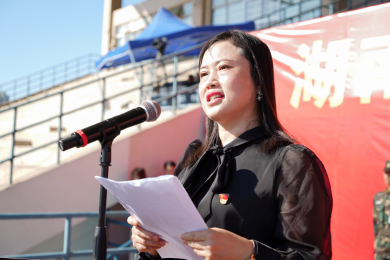 军训团教官代表段雨露和参训新生代表李茂湘先后发言,段雨露表示,将认真履行教官职责,时刻保持良好的军人姿态,严格要求自己,精心组织、科学训练、文明施教。李茂湘号召全体新生服从命令,听从指挥,磨炼意志,苦练基本功,团结互助,共同拼搏,以严肃认真的态度,高标准、高质量地完成好本次军训。