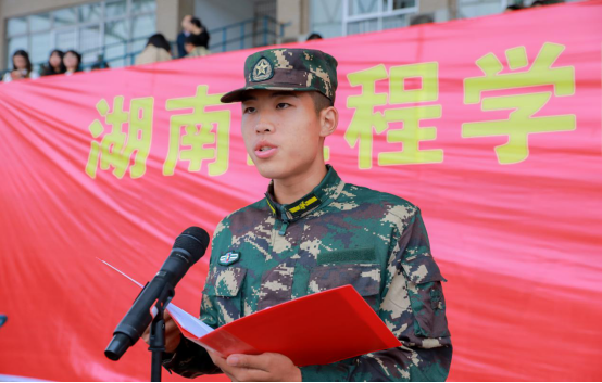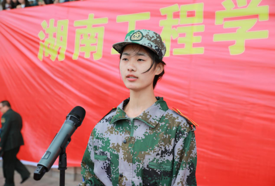 新生代表李萌上台发言,她表示,军训培养了大家的集体荣誉感,增强了大家的国防观念,展现了当代大学生互帮互助、团结友爱、积极向上的精神风貌。一营五连连长文炫作为教官代表发言,他表示,14天的军训磨砺了大家的意志和品质,增强了集体观念和荣誉感。退伍老兵代表陈鹏分享了自己退伍后的经历,希望新生要有家国情怀,不忘责任与担当,不断增强青年人的志气、骨气和底气,努力学习,把自己的青春融入到国家发展之中。