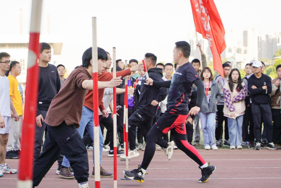 赛场上的教职工运动员神采奕奕,他们通力合作,挥洒汗水,尽情享受体育运动的过程,为取得优异成绩而奋力拼搏,校党委副书记、工会主席彭立威等校领导到现场为师生加油助威。16×50米男女混合迎面接力考验着队员团队协作和默契配合,赛道旁的加油声响起,队员们步伐矫健,眼神坚毅,奋力将接力棒递入队友手中。2021年秋季校运会,师生同台大展运动风采!