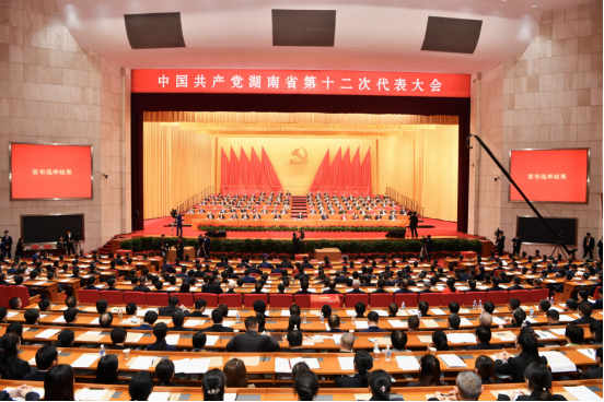 11月28日上午,中国共产党湖南省第十二次代表大会在省人民会堂胜利闭幕。大会号召,全省各级党组织和全体共产党员要更加紧密地团结在以习近平同志为核心的党中央周围,高举旗帜、牢记嘱托、埋头苦干、勇毅前行,全面落实“三高四新”战略定位和使命任务,为全面建设富强民主文明和谐美丽的社会主义现代化新湖南而努力奋斗!