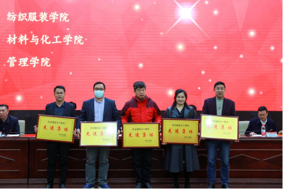 教学院部先进集体代表、材料与化工学院党委书记张何,纪念活动工作组先进集体代表、联络与接待组组长陶宏先后与大家分享了学校上下为筹备推进建校70周年各项活动默默付出、无私奉献的感人事迹,以及在这过程中的感悟与体会。从晨光熹微到繁星满天,从夏日炎炎到秋叶初染,从联络接待到志愿服务,从方案制定到具体实施……湖工人的身影无处不在,他们所在的岗位不同、承担的角色不同,但都各尽其责、精益求精,为纪念活动的圆满成功贡献了一份力量。