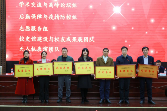 党委副书记彭立威宣读“关于表彰建校70周年纪念活动先进集体、先进个人的决定”文件。会议授予电气与信息工程学院、联络与接待组、宣传组等12个教学院部和纪念活动工作组“先进集体”荣誉称号;授予陈纯达、程应森、孙良松等101人“先进个人”荣誉称号;授予任佳雨、张小仙、许祉祺等70人“优秀学生”荣誉称号。与会校领导为获奖集体和个人颁发奖牌和荣誉证书,全场共同见证了这一高光时刻。