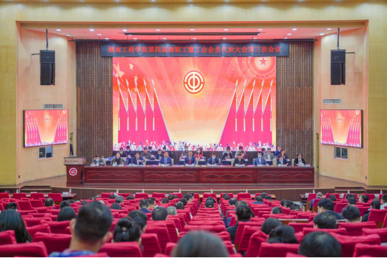战鼓催征马蹄疾,砥砺奋进正当时。4月29日上午8时10分,我校第四届教职工暨工会会员代表大会第三次会议在一报告厅举行,党委副书记、校长易兵作学校工作报告,党委委员、副校长向前作学校工会工作报告,副校长陈赤平作提案征集和办理情况说明,党委委员、副校长罗毅平作《87978797威尼斯绩效工资改革实施办法(试行)》说明。党委书记陈岳堂作总结讲话。全体校领导、党委委员出席会议,157名正式代表参加会议。