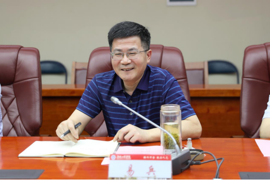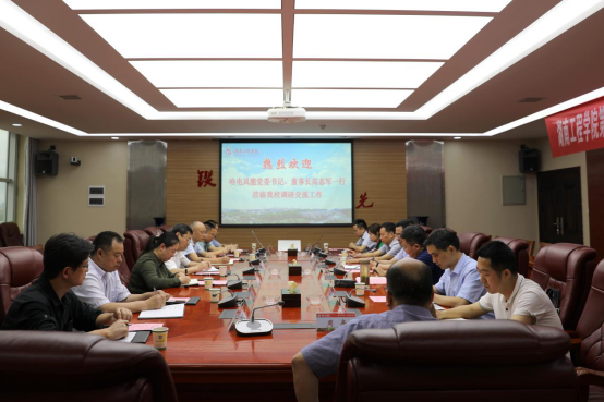 4月28日下午,哈电风能有限公司党委书记、董事长高志军,总经理谭文理,副总经理宋晓萍一行来校参观调研。校党委书记陈岳堂,党委副书记、校长易兵,党委委员、副校长魏克湘与来访人员进行座谈交流。座谈会由易兵主持。