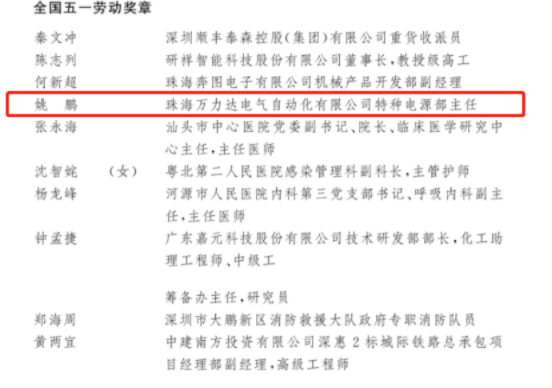 近期,中华全国总工会召开大会表彰2022年全国五一劳动奖和全国工人先锋号获得者,我校2006级电气工程专业校友姚鹏荣获“全国五一劳动奖章”。