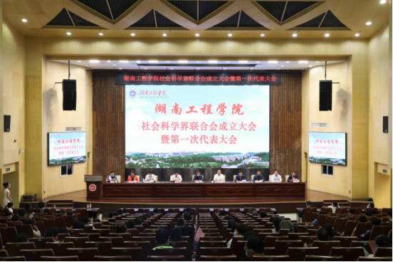 5月24日下午,我校社会科学界联合会成立暨第一次代表大会在一报告厅举行,湖南省社科联党组成员、副主席丁宇,湖南省社科联机关党委(人事处)常务副书记、处长黄云志;湘潭市社科联党组书记、副主席李峰;湘潭大学社科处处长、社科联副主席兼秘书长欧定余;湖南科技大学社科处处长、社科联秘书长贺胜兵出席;大会由党委副书记、校长易兵主持,党委书记陈岳堂发表讲话,党委委员、副校长魏克湘作社科联筹备工作报告,党委委员、副校长张小刚、向前,各职能部门负责人、各文科学院(部、中心)院长(主任)、拟任委员、教师代表143人参加大会。