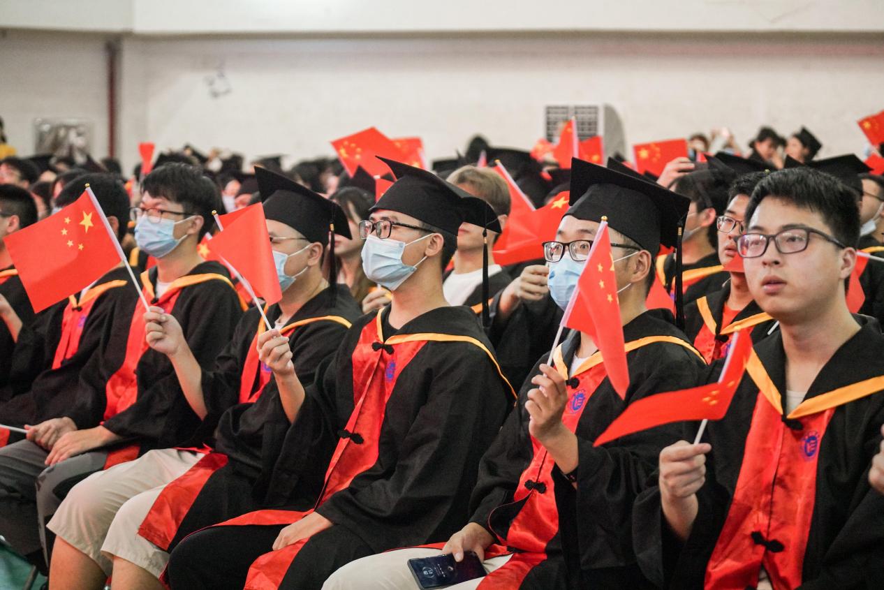 在做好常态化疫情防控、充分保障师生安全前提下,毕业典礼在体育馆举行。毕业纪念视频播放完毕后,一名名毕业生手持手麦自座位上起立,演唱《同桌的你》《明天你好》《那些年》等歌曲。悠扬的歌声带来的不只是惊喜,更勾起了学子们对校园最为深刻的记忆。在庄严的国歌声中,2022年毕业典礼正式拉开帷幕。