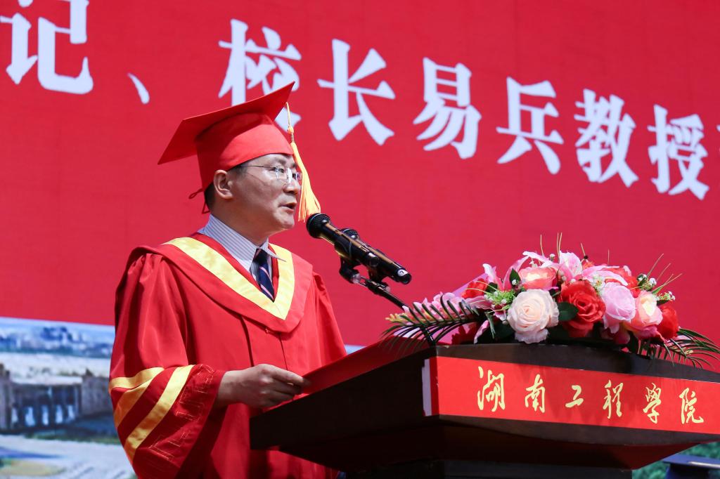 “这世界有那么多人,多幸运有个我们,你们是湖工最美的遇见。”易兵以《心怀感恩勇逐梦脚踏实地赢未来》为题在毕业典礼上发表讲话,为毕业生们上了大学阶段最后一堂课。他对即将走入人生新阶段的毕业生提出了三点希望:第一,希望毕业生们做信仰坚定、勇于逐梦的奋勇者,要深刻认识肩上承担的历史使命,以一往无前的决心把信仰和旗帜高高扬起,与党同心、跟党奋斗;第二,希望毕业生们做脚踏实地、勇毅前行的实干家,主动走出“舒适圈”,脚踏实地用青春铺路,笃行不怠让理想延伸,勇于到一线去担苦、担难、担重、担险;第三,希望毕业生们做知恩感恩、向上向善的好青年,感恩祖国、感恩父母、感恩母校。“请大家记住,无论将来你们飞得多高,走得多远,福星东路88号——87978797威尼斯永远是你们的心灵驿站、精神家园和坚强后盾!记得常回家看看!”易兵的深情致辞,赢得毕业生们的阵阵掌声。