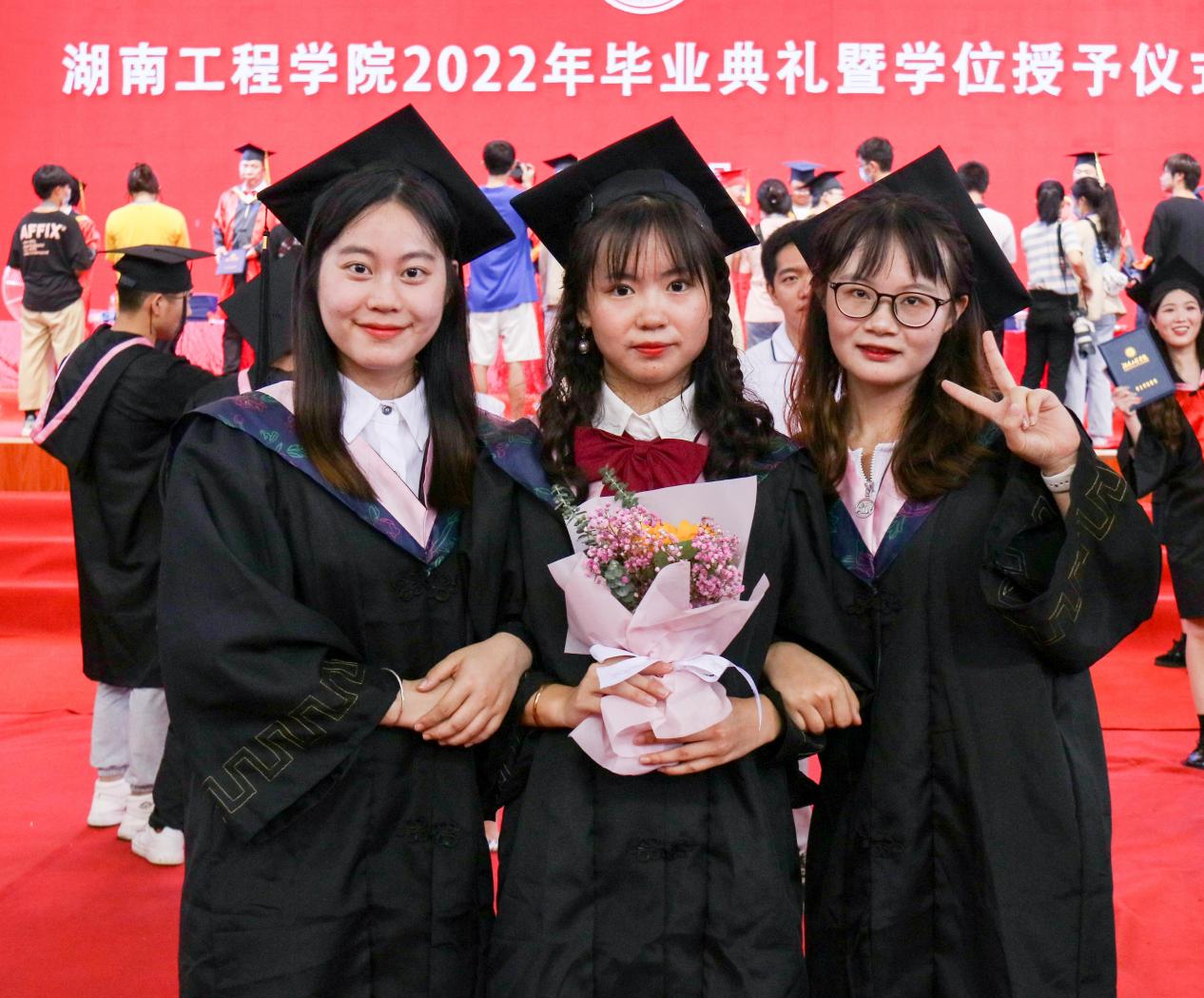 “相聚湘江之滨,踏着伟人足迹……”熟悉的校歌旋律响起,全场毕业生齐唱校歌,为毕业典礼、也为在湖工的求学生涯画上了圆满句号。