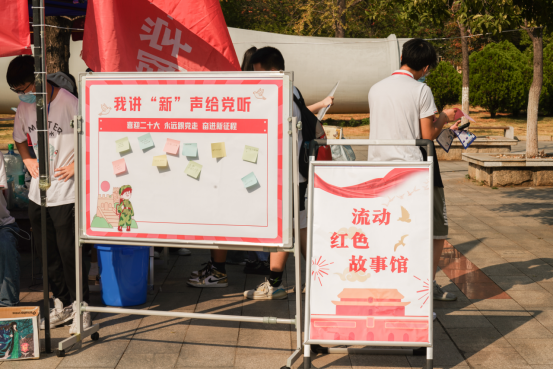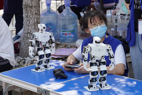 电气与信息工程学院也展示了大学生创新基地研发的机器人、无人机。学生通过操控机器人,向新生打招呼、鞠躬,机器人还会做翻跟斗、俯卧撑和仰卧起坐等等一系列动作,现场科技感满满,吸引新生连连驻足,大家更加真实地体验到了科技创新的魅力。计算科学与电子学院以“我讲‘新’声给党听”为主题,打造“流动红色故事馆”,寄语新生“喜迎二十大,永远跟党走,奋进新征程”,开展新生入学红色教育。此外,各学院还有合影板拍照打卡、推广普通话小游戏、分发明信片……创意满满的迎新方式为“萌新”们,洗去一路风尘,整个迎新过程既有温度又有趣味。