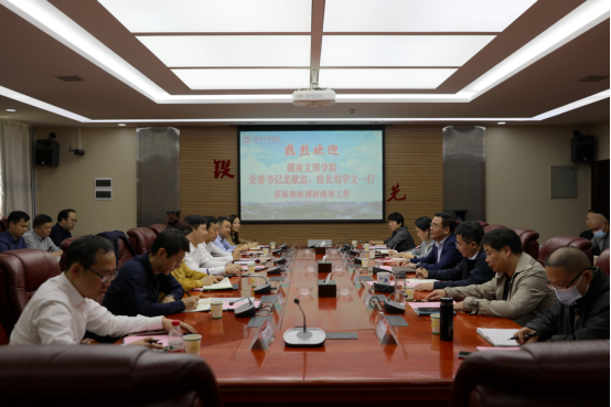 陈岳堂代表学校对湖南文理学院的来访表示热烈欢迎。他表示,两校拥有兄弟般的情谊,发展脉络同步,共同的命运、一致的目标让两所高校更加紧密地联系在一起。学校在发展过程中得到了湖南文理学院的帮助与支持,希望未来双方能进一步加强合作,拧成一股绳,共同谱写高质量发展新篇章,互相学习工作经验,在党的建设、学科专业、人才培养等各方面深入合作、携手共进。
