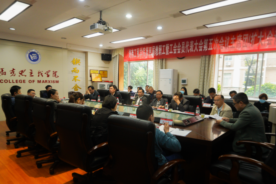 向前作题为《聚焦使命 服务大局 为谱写学校高质量发展新篇章凝心聚力》的工会工作报告。2022年,学校工会按照上级工会和学校党委确定的目标、任务,创新思维,履职尽责,发挥着组织、引领、服务教职工的作用,促进学校改革发展稳定,重点做好了以下工作:以坚持党的全面领导为统领,强化理论武装,持续深化思想政治引领工作格局;以落实“双代会”制度为根本,深化民主管理,持续夯实教职工主人翁地位;以增进教职工福祉为重点,加强维权和福利保障,持续巩固校园和谐稳定局面;围绕学校中心工作开展各项活动,培育积极向上的校园文化氛围;关爱女性健康成长,倾心做好女教职工工作。