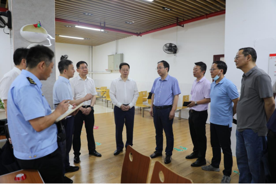 6月13日上午,湘潭市人大常委会主任、党组书记李激扬来我校实地督导食品安全“两个责任”工作机制落实情况。市人大常委会副主任傅军、秘书长成秋兴,市市场监管局党组书记、局长赵波参加督导。副校长陈赤平及后勤基建处相关负责人陪同。