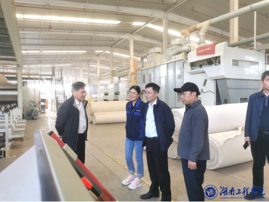 为进一步加强校企合作,持续推动“百名博士入企业”活动,加快科技成果转化,拓宽毕业生就业市场,11月6日上午,党委副书记、校长易兵一行赴湖南南源新材料有限公司走访调研,共谋发展,并参观公司研发、生产现场和产品展厅。宣传部、科技处和纺织服装学院相关负责人,驻企业博士等陪同调研。