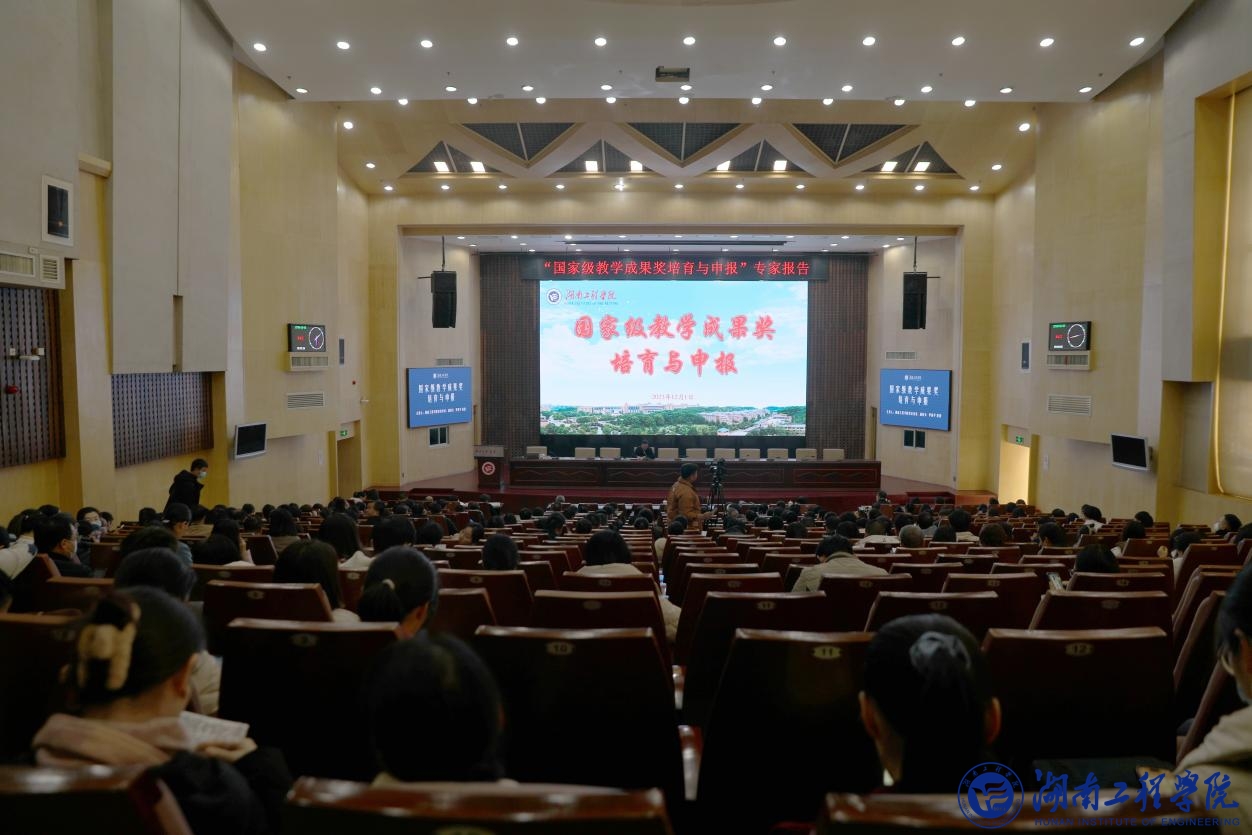 2022年我校国家级教学成果奖实现了突破,为进一步推进教学成果培育与申报工作,准确把握深化本科教育教学改革方向,大力推动本科教育高质量发展,全面提高人才培养能力,12月1日下午,我校在一报告厅举办“国家级教学成果奖培育与申报”专题辅导报告会。国家级教学名师、原江南大学副校长纪志成教授应邀作专题辅导报告。校党委副书记、校长易兵,校党委委员、副校长向前,校党委委员、副校长魏克湘出席会议。各教学院(部、中心)院长,分管日常教学、实验实践教学的副院长,一流本科专业负责人、一流本科课程负责人、教研室主任、部分专任教师以及教务处相关人员参加会议。校党委委员、副校长罗毅平主持会议。