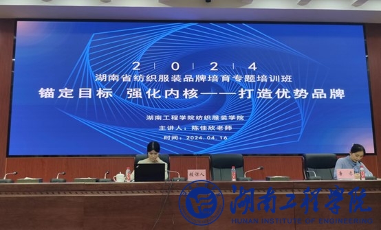4月16日,由湖南省工业和信息化厅主办的湖南省纺织服装品牌培育专题培训班成功举办。我校为协办单位之一。学院陈佳欣老师受邀作专题讲课。