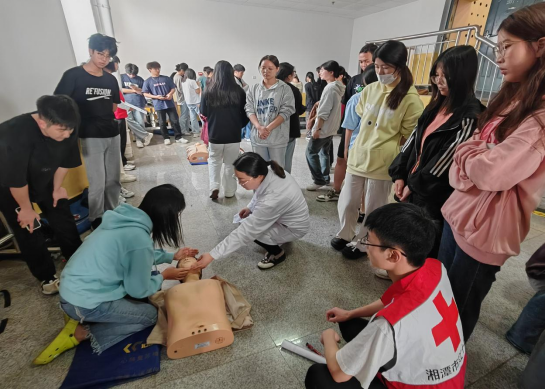 活动现场,湘潭市红十字志愿者协会培训部部长李菊佳、救援队副队长崔金明向学生们详细介绍了心肺复苏的重要性和必要性。李菊佳指出,心肺复苏是抢救心脏骤停患者的关键措施,掌握正确的急救技能对于挽救生命至关重要。在生动的案例和互动问答中,同学们对心肺复苏有了更加深入的了解。