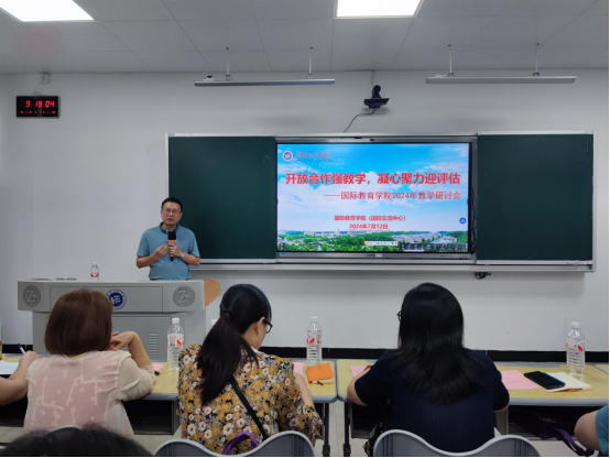 为持续推进高水平教育对外开放,进一步构建我校创新性国际化人才培养体系,提高中外合作办学质量,7月12日上午,国际教育学院在C306教室举办以“开放合作强教学,凝心聚力迎评估”为主题的教学研讨会。校党委委员、副校长罗毅平出席。研讨会由国际教育学院党委书记罗胜杰主持,国际教育学院任课教师、教学督导以及学院全体教职员工参加。