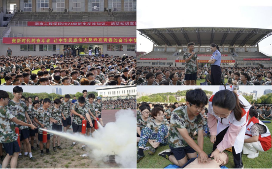 为丰富学生的安全教育内容,保卫部还邀请了湘潭公安、消防以及学校后勤基建处医疗与健康管理科等人员,现场进行消防、急救、防范网络电信诈骗等知识宣讲和实操练习,力求让新生在轻松的氛围中快速掌握实用的安全知识与技能,提升安全防范意识和能力。