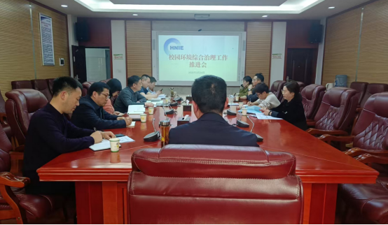 3月24日下午,学校在一会议室召开校园环境综合治理工作推进会,党委委员、副校长张小刚,党政办公室、宣传部、学生工作部、资产管理处、采购与招标管理处、后勤基建处、保卫部、离退休工作处、图书馆、智能科学与工程学院、体育科学与工程学院等部门相关负责人参加。