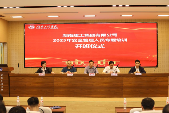 4月23日至24日,湖南建工集团有限公司2025年安全管理人员专题培训(第一期)在我校智慧建造与能源工程学院报告厅开班。本次培训由我校智慧建造与能源工程学院承办。校党委委员、副校长魏克湘,湖南建工集团党委委员、副总经理黄伟等相关负责人及130余名企业安全管理人员,我校智慧建造与能源工程学院负责人及教师代表参加开班仪式。