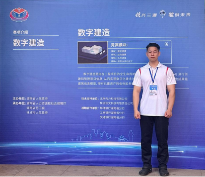 4月18日晚,由省人民政府主办的湖南省第二届职业技能大赛在株洲闭幕。我校智慧建造与能源工程学院学子谭猛,在指导老师汤丹的精心指导下,在数字建造赛项中脱颖而出,获优胜奖。