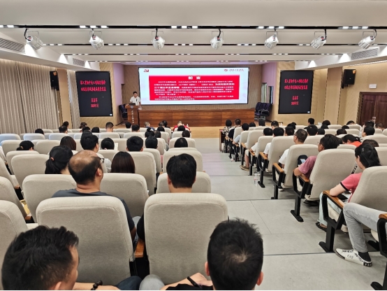 7月1日下午,校党委委员、副校长吴志军在建工楼115报告厅讲授题为“锲而不舍落实中央八项规定精神 以优良作风推进学校高质量发展”的专题党课。教务处(新工科·新文科建设办公室)、资产管理处、采购与招标管理处、高教研究与教学评估中心、智慧建造与能源工程学院、设计艺术学院、卓越工程师学院全体党员教师参加学习。