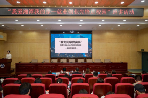 10月30日下午,我校在图书馆二报告厅举办“我爱湘潭我的家——就业创业先锋进校园”巡讲活动,湘潭市就业创业先锋代表骆书侣与职业指导专家郑曦霞受邀来校宣讲。本次活动由湘潭市人力资源和社会保障局、共青团湘潭市委主办,校团委、创新创业学院承办。