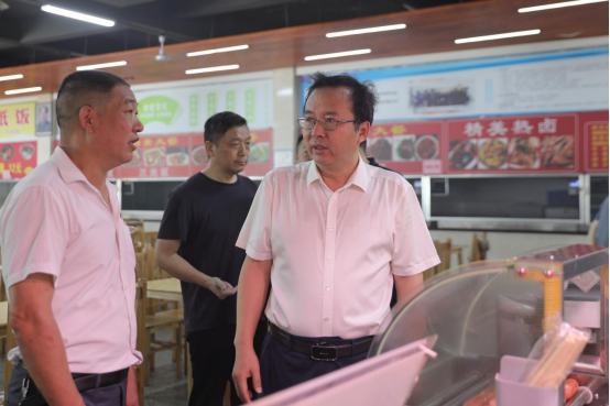 6月28日上午,陈赤平带队深入各校区学生公寓、食堂、施工工地等学生生活场所和重点区域重点检查食品卫生安全和消防安全等情况。在基建工地,陈赤平对建工大楼建成后的沿渠周边土坡绿化及安全问题、学生公寓南侧建设摩托车停放点等问题提出了具体要求。在各食堂,陈赤平仔细查看食堂从业人员健康管理、场所环境卫生、消防设施配备等相关工作的落实情况,走进食材加工间详细察看并询问食材采购、加工、储藏、售卖、留样、台帐管理以及用水、用电、用气、油烟管道清洗频次等各个环节的情况,要求对现场发现的仓库乱堆乱放问题进行即时整改。在学生宿舍,陈赤平就宿舍消防安全、寝室卫生、大功率电器使用情况等进行重点检查,对检查中存在的问题,要求及时做好整改、消除安全隐患。