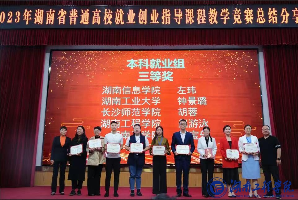 11月3日,由湖南省教育厅主办的2023年湖南省普通高校就业创业指导课程教学竞赛决赛在湖南农业大学举行。我校选送的机械工程学院赵游泳老师获本科就业组个人三等奖,学校获本科组优秀组织奖。